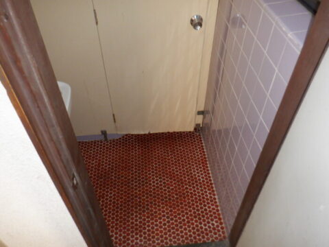 既存和式トイレ、仕切り壁、段差を撤去しました。