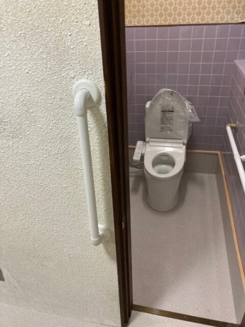 また、出入口とトイレ内に手すりを取付け簡易ではありますがバリアフリー化しました。